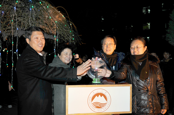 答谢会后,周崑及各位来宾与萱草学子在一二•九公园共同举行了爱心树亮灯仪式。